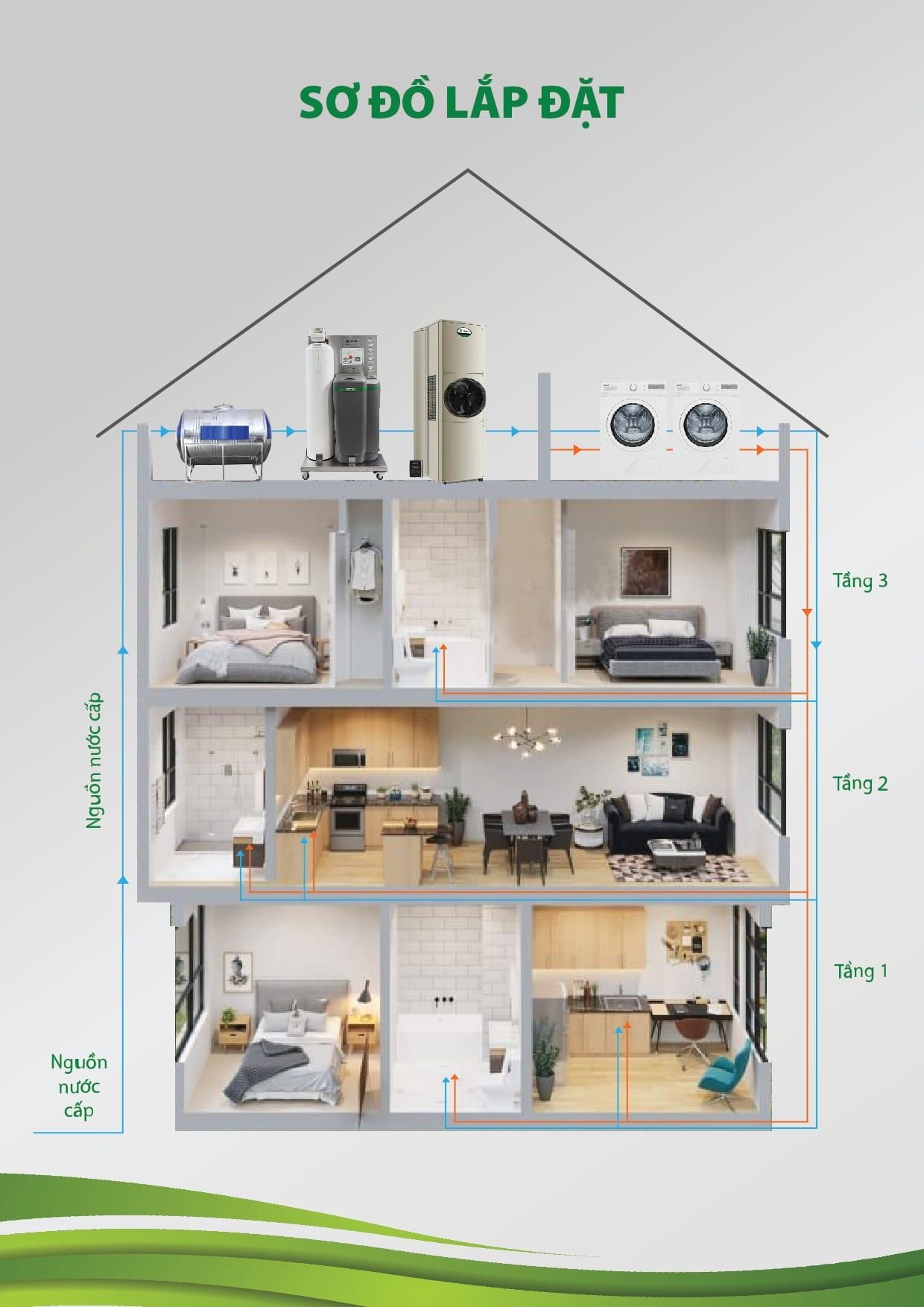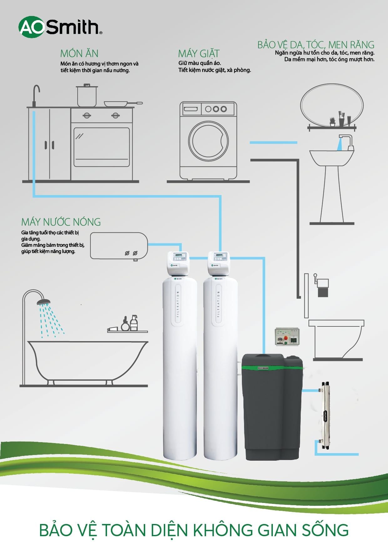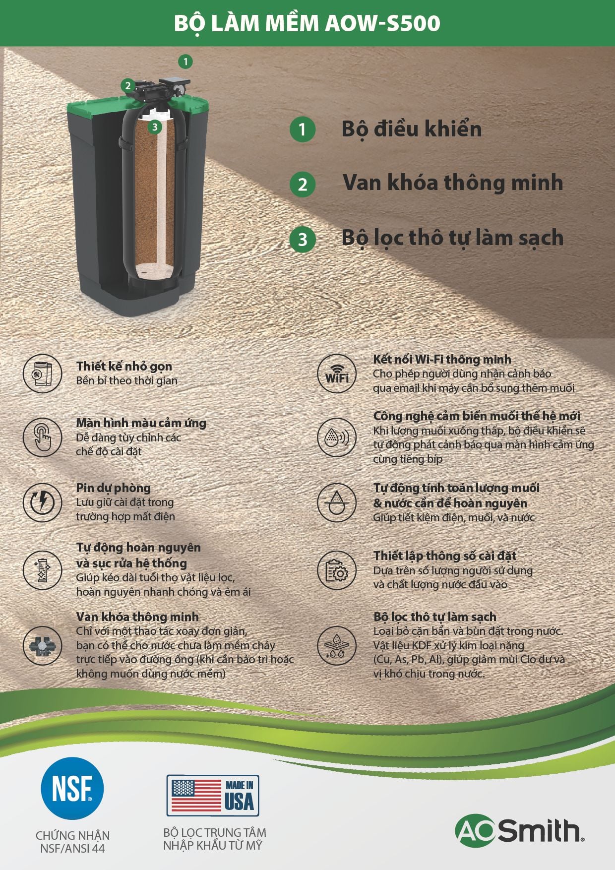 Bộ làm mềm nhập khẩu từ Mỹ, được chứng nhận bởi tổ chức NSF International theo tiêu chuẩn. NSF/ANSI 44 (Standard 44) của Hoa Kỳ, giúp loại bỏ phần lớn Canxi, Magie, bảo vệ các thiết bị vệ sinh và các thiết bị như máy giặt, bình nước nóng…