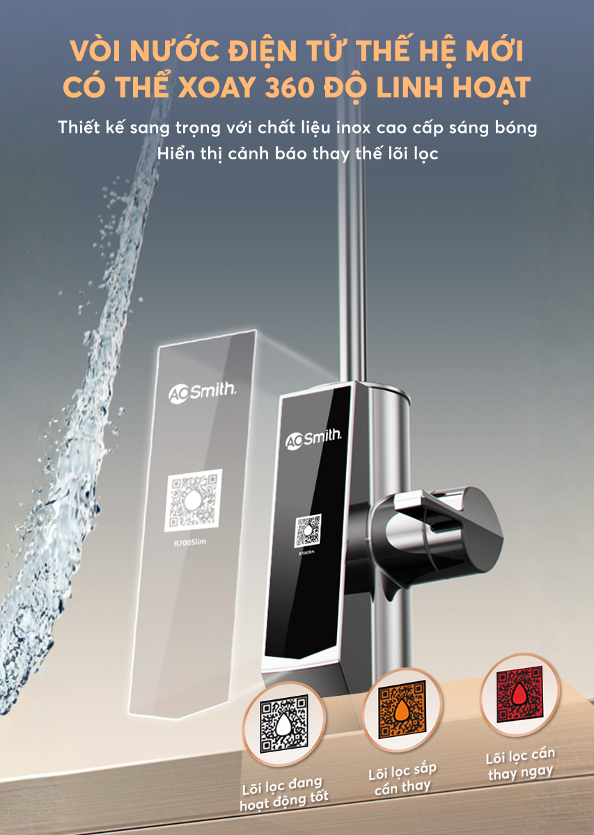 Vòi nước điện tử thế hệ mới với hệ thống cảnh báo thay lõi tích hợp ngay trên thân vòi