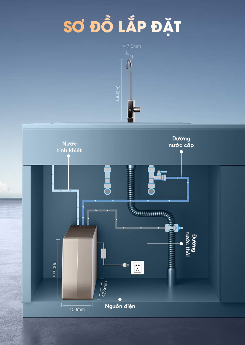 Công nghệ lõi lọc mới cho phép lắp đặt linh hoạt theo cả chiều dọc và chiều ngang máy, tiết kiệm tối đa không gian