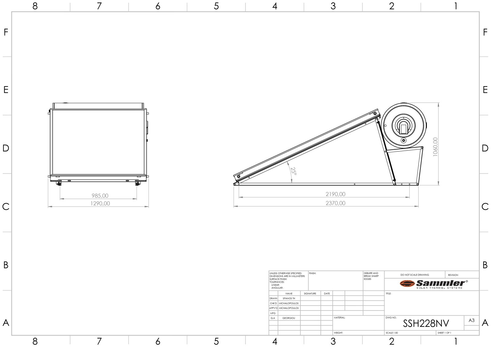 - Máy nước nóng năng lượng mặt trời tấm phẳng Sammler SSH228-2 200 lít được sản xuất và nhập khẩu nguyên bộ từ Hy Lạp với công nghệ sản xuất hiện đại, hiệu suất cung cấp nước nóng cao, đạt nhiều tiêu chuẩn và chứng chỉ chất lượng bởi nhiều cơ quan uy tín trên thế giới.